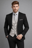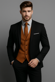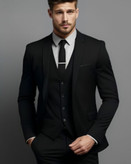 کت شلوار جلیقه مردانه کرپ زنبوری مشکی الگو اندامی جلیقه دورو