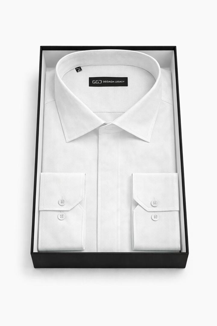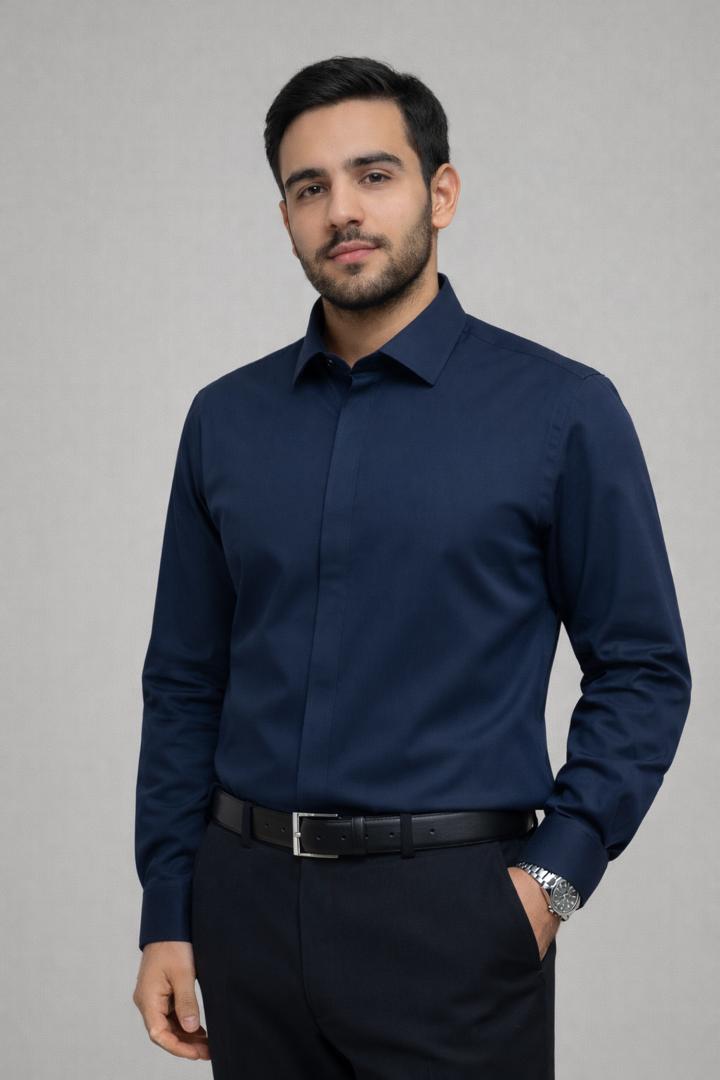 پیراهن مردانه کرپ کش الگو رگولار فیت دوخت صنعتی دکمه مخفی